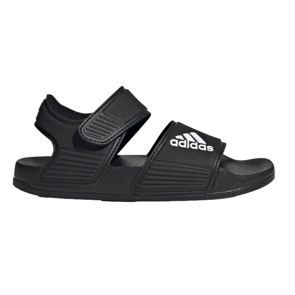 Inspired by classic Adilette slides, these kids' adidas sandals are perfect for sunny days of play in and out of the water. A hook-and-loop strap creates an easy on and off. The quick-drying upper lets them play in comfort until they're back on dry land.