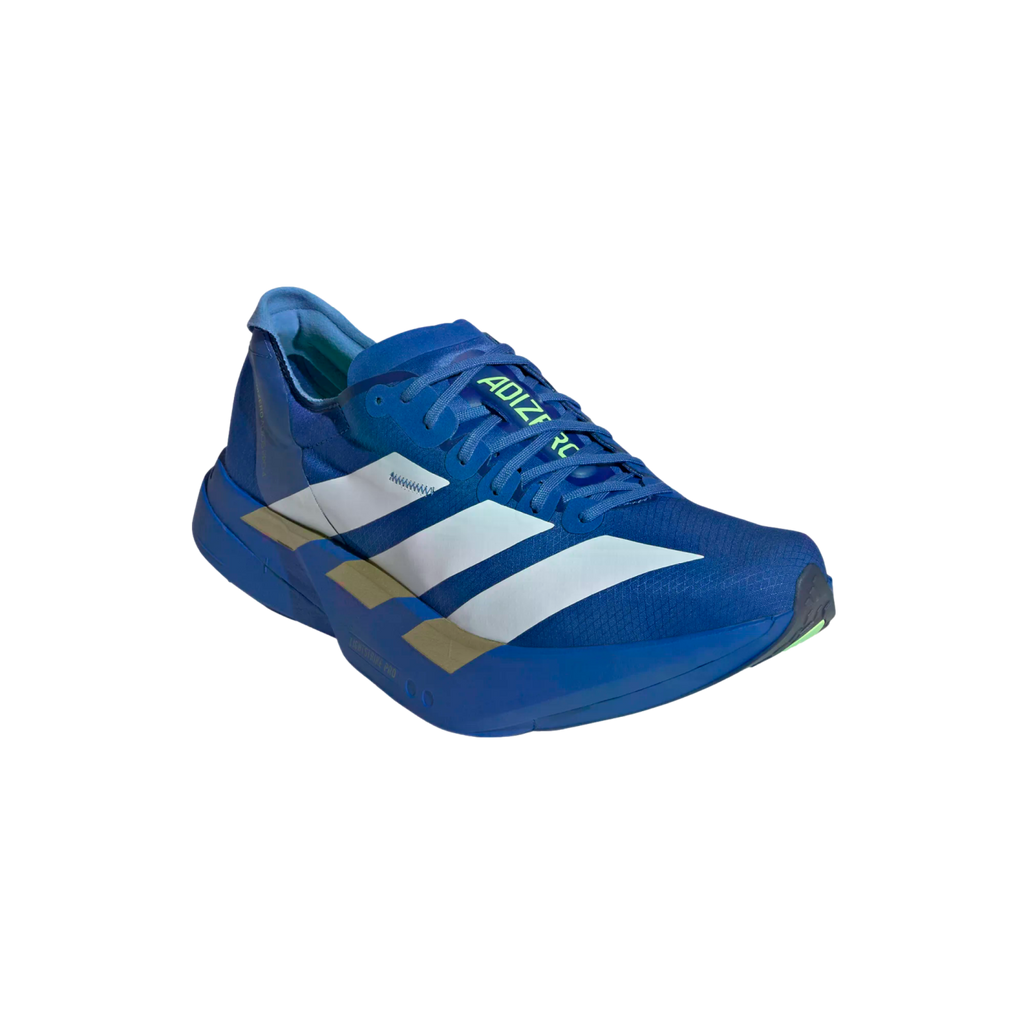 Proven to be the world's most winning shoe, the Adizero Adios Pro line is the pinnacle of Adizero Racing shoes. The Adios Pro 4 is made for fast runners who want to experience faster, with enhanced features designed to optimize running efficiency. Our carbon-infused ENERGYRODS 2.0 provide a seamless transition from heel to toe for a snappy, efficient stride. In the midsole, a new rocker point offers improved running economy. A double layer of our best-in-class ultralight LIGHTSTRIKE PRO ensures cushioning for every quick stride you take, helping you maintain energy over the long term. The shoe rides on an outsole built with Continental™ rubber for a no-slip transition during toe-off, as well as LIGHTTRAXION, designed to reduce weight without sacrificing grip.