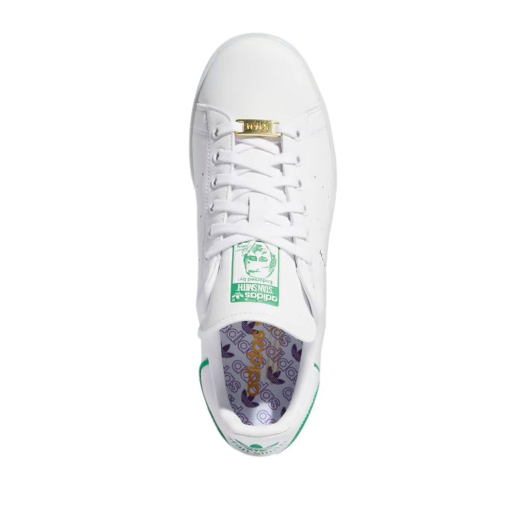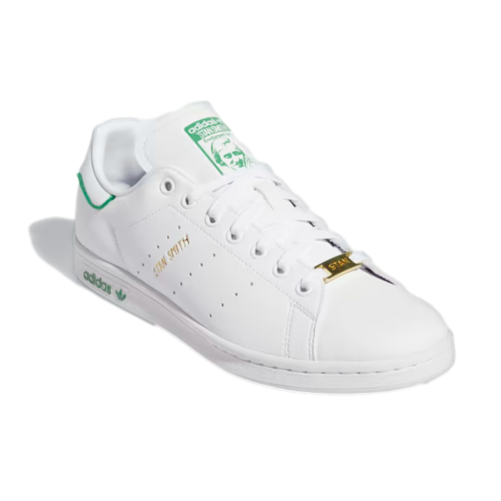 The adidas Stan Smith shoes are pretty unmistakable at this point. Clean. Minimalist. Versatile. It's their calling card, one that's continued to make an impact all over the cultural landscape. There's absolutely no disputing what these sneakers are, especially since STAN SMITH flashes in gold from the side, the tongue label has the namesake's face quite boldly there and gold jewels dangle from the laces — STAN on one shoe, SMITH on the other.